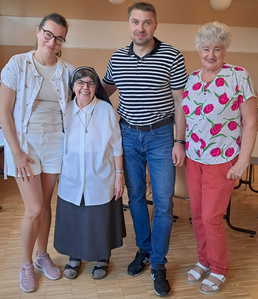Auf dem Foto: Sr. Michaela mit unserer ukrainischen Familie, die uns wieder tatkräftig unterstützt hat.